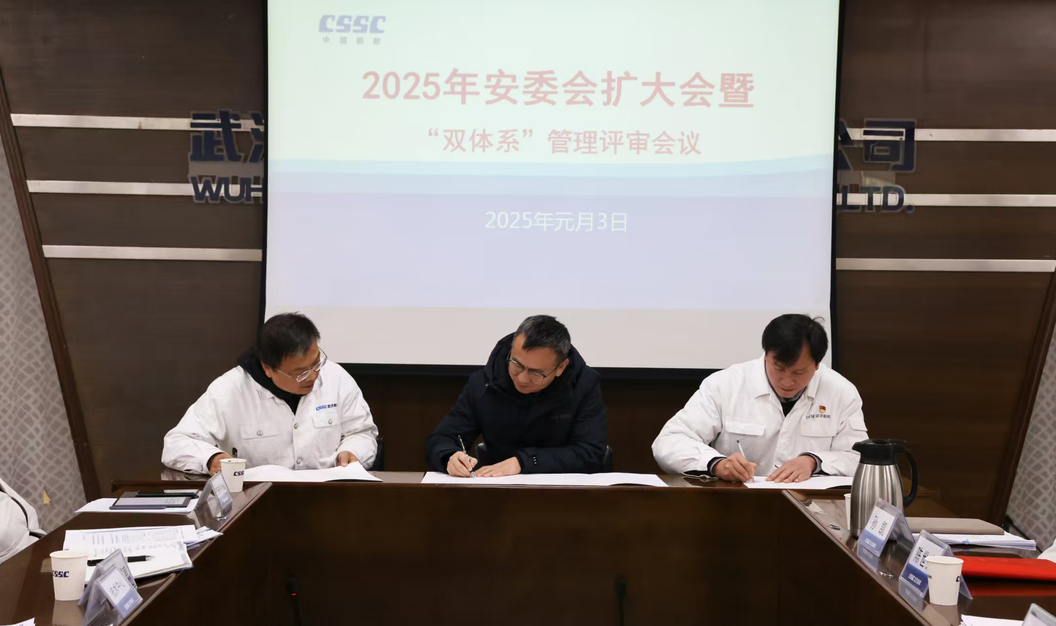 為深入貫徹習近平總書記關于安全生產重要論述、重要指示批示精神和中國船舶2025年度安全、環保及核安全工作精神,堅決筑牢安全防線,1月3日,公司召開2025年安委會擴大會暨“雙體系”管理評審會議。會議由公司黨委副書記、總經理程立兵主持,公司領導班子全體成員、各相關部門負責人參加會議。
