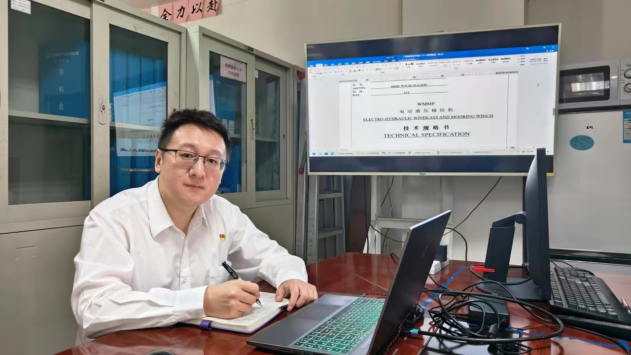 馮軒是市場營銷部經營員,負責浙江、福建、廣東三省的船舶產品經營工作及國內船舶市場信息收集整理工作,在參與多項船舶配套產品技術和商務洽談中發揮了重要作用。2024年,馮軒共中標項目32個,承接了批量舵機、克令吊、錨絞機等訂單,其中電動錨絞機占部門全年承接的40%。
