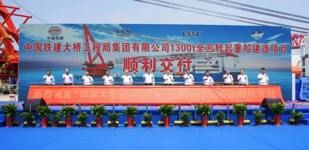 5月28日,中船集團武漢船機參建的中鐵建大橋局“鐵建大橋起2”1300噸全回轉起重船在青島海西重機碼頭順利交付。